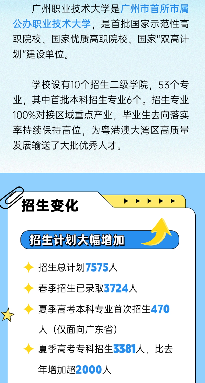 本科470人!广州职业技术大学2025年招生计划确定