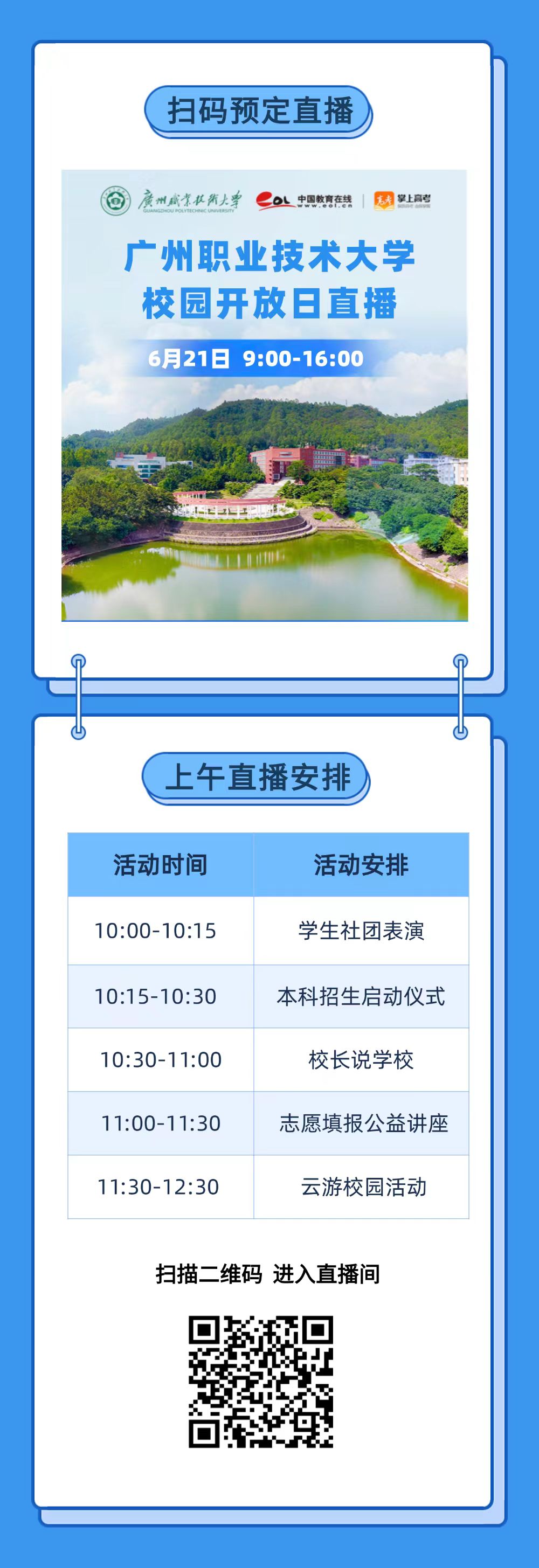 6月21日,广州职业技术大学校园开放日直播预告来啦!