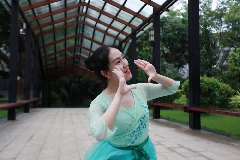 她是该校教育学院2022级舞蹈专业1班的曾婧琳,在校期间品学兼优,不仅专业扎实,而且积极参加校内外各类社会实践。在专业领域考取了北京舞蹈学院中国舞9级、中国音乐学院古筝标准级教师资格证书,其原创古典舞剧目《桃花山》荣获青少年“我要上春晚”特金奖,并先后荣获“创新创业校赛银奖”“互联网➕校赛铜奖”,校级二等、三等奖学金等荣誉;她平时热心公益,积极参与珠海市第二中学、实验小学等社会实践志愿活动。