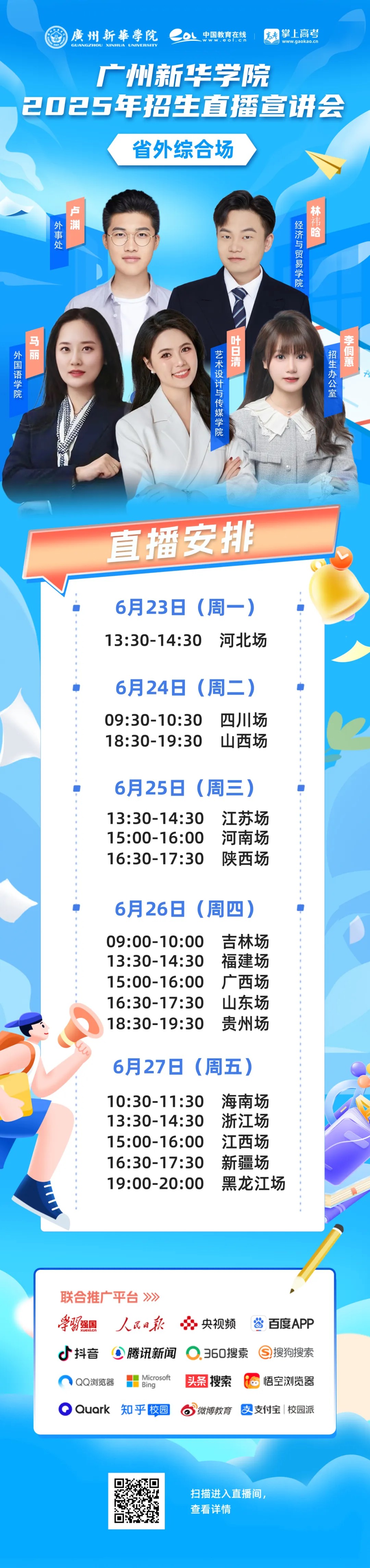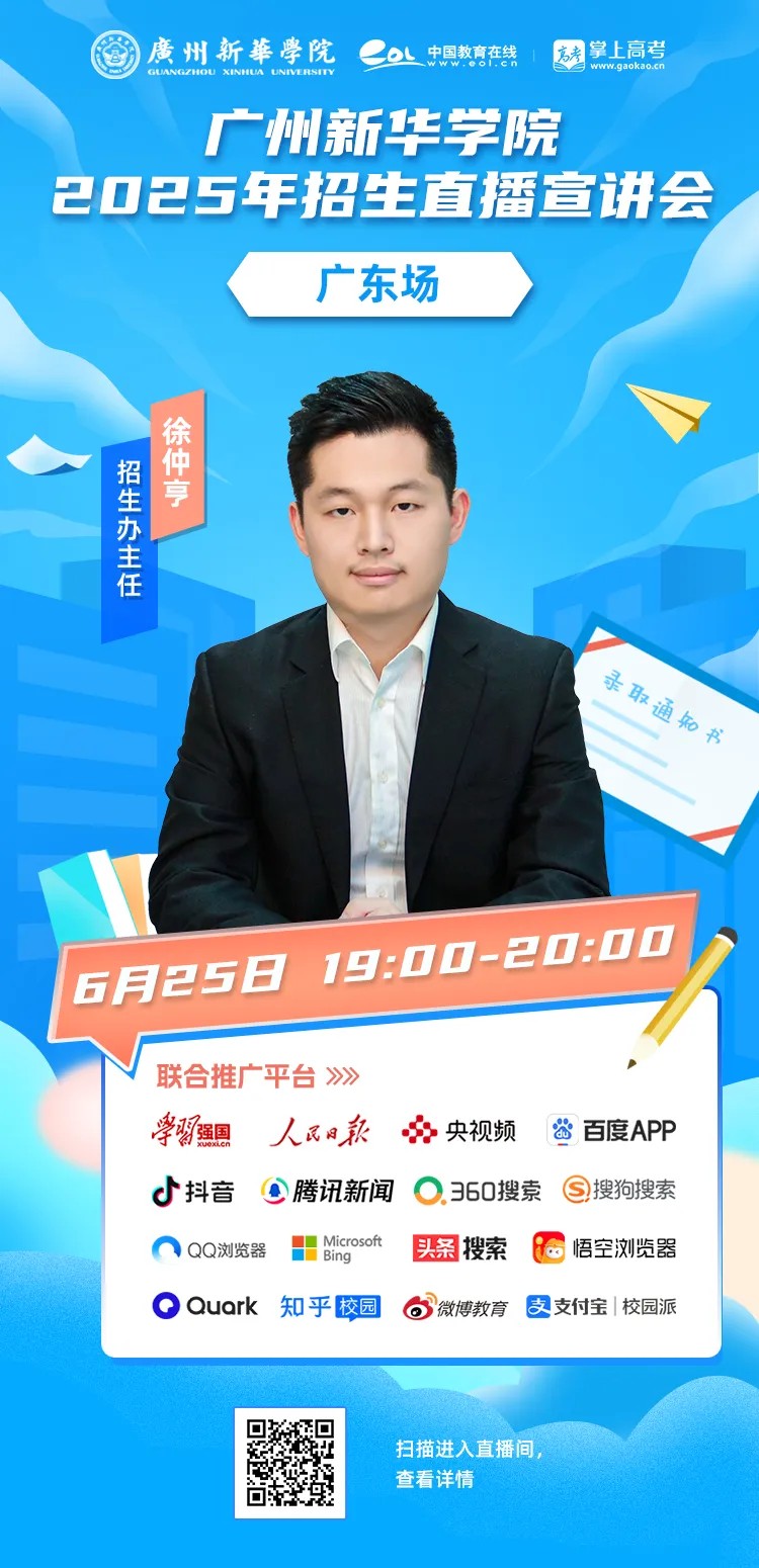 直播预告 | 广州新华学院2025年普通高考各省招生直播专场约定你!