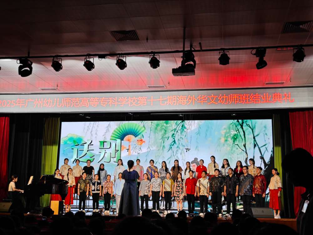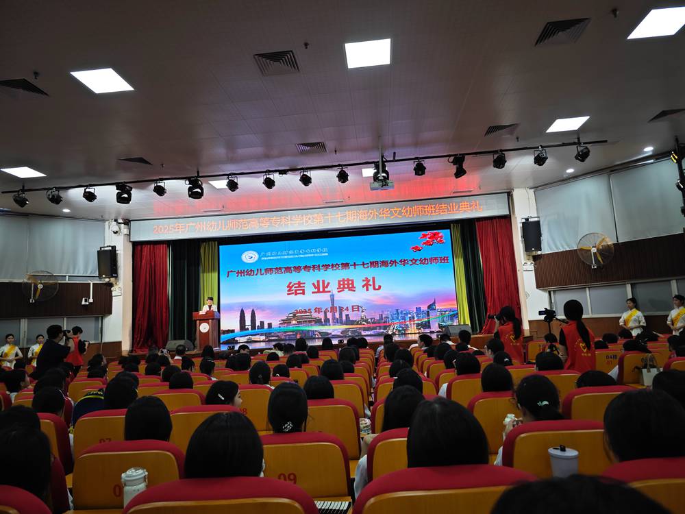 6月24日,广州幼儿师范高等专科学校林和校区礼堂内掌声雷动,第十七期海外华文幼师培训班结业典礼在此举行。广州市人民政府侨务办公室主任、二级巡视员江帆,侨务文化工作处处长李楠,广州市教育局职终处、宣教处、国际交流合作处相关领导,印尼华文教育联合总会主席郑洁珊、秘书吴少冰,广州幼儿师范高等专科学校党委书记、行政负责人丘毅清及学校领导班子成员参加结业典礼,并观看汇报演出。共同见证28名来自印度尼西亚、马来西亚的学员完成学业,开启海外华文教育新征程。