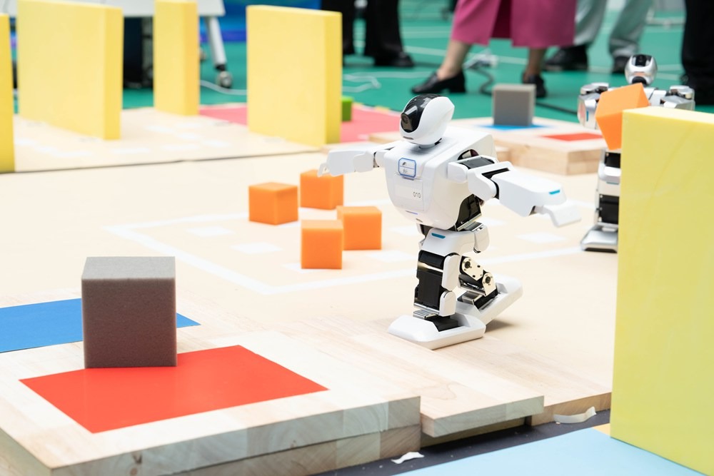 6月20日,由广东省教育厅主办的2025年广东省大学生计算机设计大赛暨第18届中国大学生计算机设计大赛粤港澳大湾区赛——AI-人形机器人专项挑战赛决赛开幕式,在广东生态工程职业学院天河校区综合楼一楼举行。广东生态工程职业学院校长刘晓冰、副校长文震,广东省大学生计算机设计大赛组委会王连喜、广东共创智能科技有限公司总经理陈锐锋等参加开幕式。
