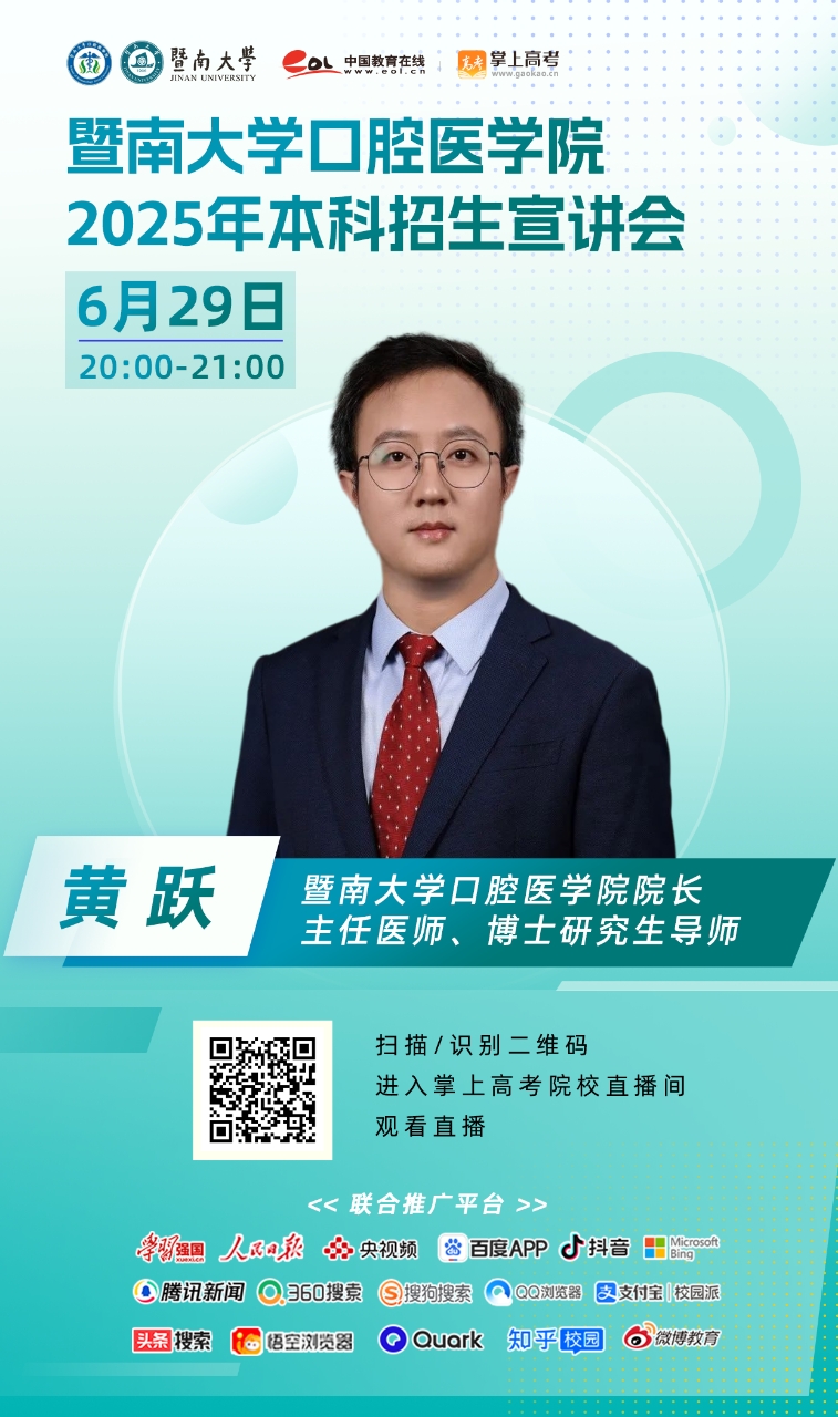 6月28-29日,暨南大学口腔医学院2025年本科招生直播宣讲会等您来!