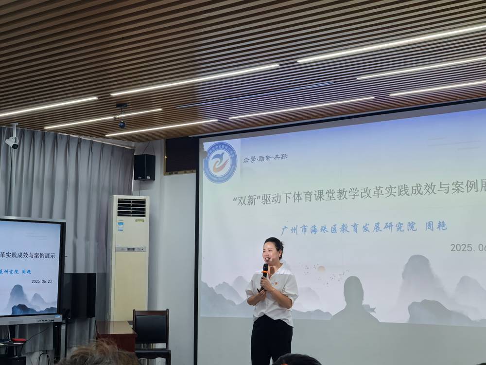 活动当天,两场赋能讲座干货满满。广州市海珠区体育教研员周艳作题为《“双新”驱动下体育课堂教学改革实践成效与案例展示》的讲座,结合实例剖析新课标背景下的教学创新路径。广州大学体育学院丛密林教授聚焦《中小学体育教师科研能力提升的若干关键问题》,围绕中小学体育科学研究选题、文献检索筛选及科研论文撰写等要点展开,助力中小学体育教师提升科研能力。
