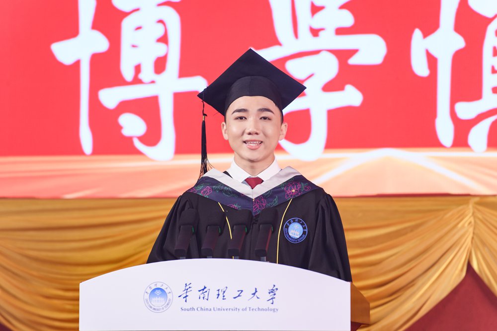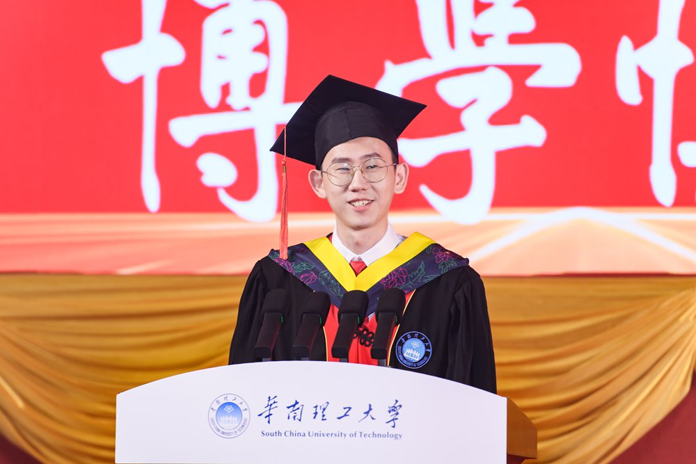 研究生毕业生代表、软件学院吴欣在华南理工大学就读本硕博的11年时光里,聚焦AI模型,向科学未知领域“冲锋”,运用专业知识助力实际应用,曾作为核心成员之一投身产业软件难题攻关,惠及千万级别用户。未来他将持续专注科研工作及成果应用,为建设数字中国贡献青春“华工力量”。