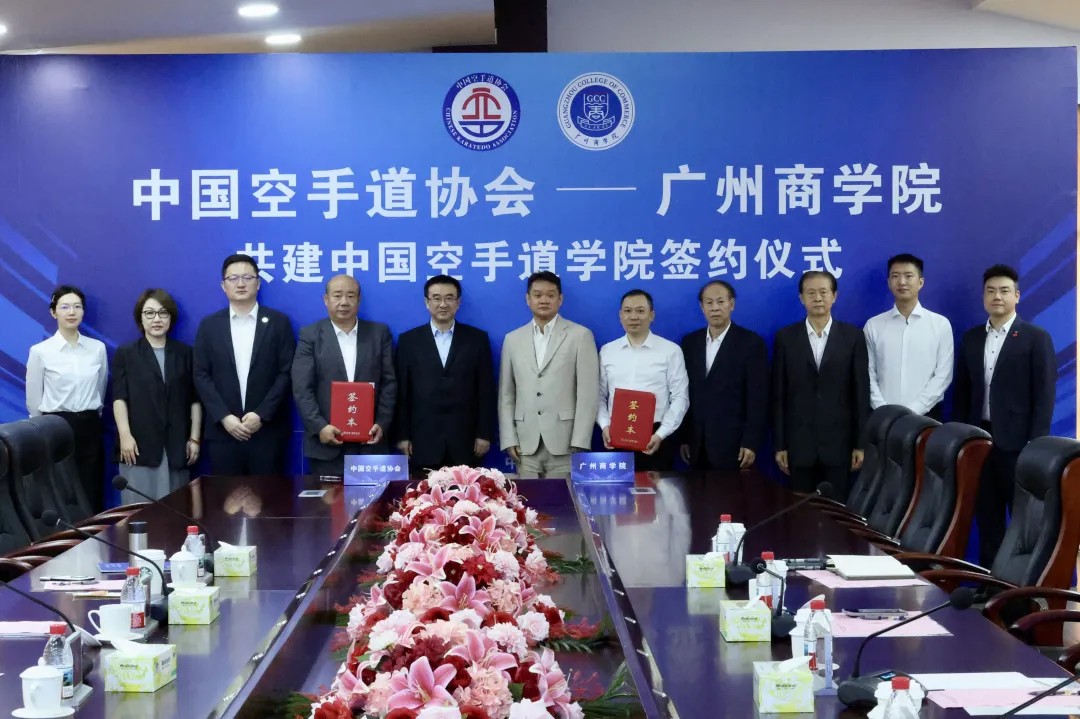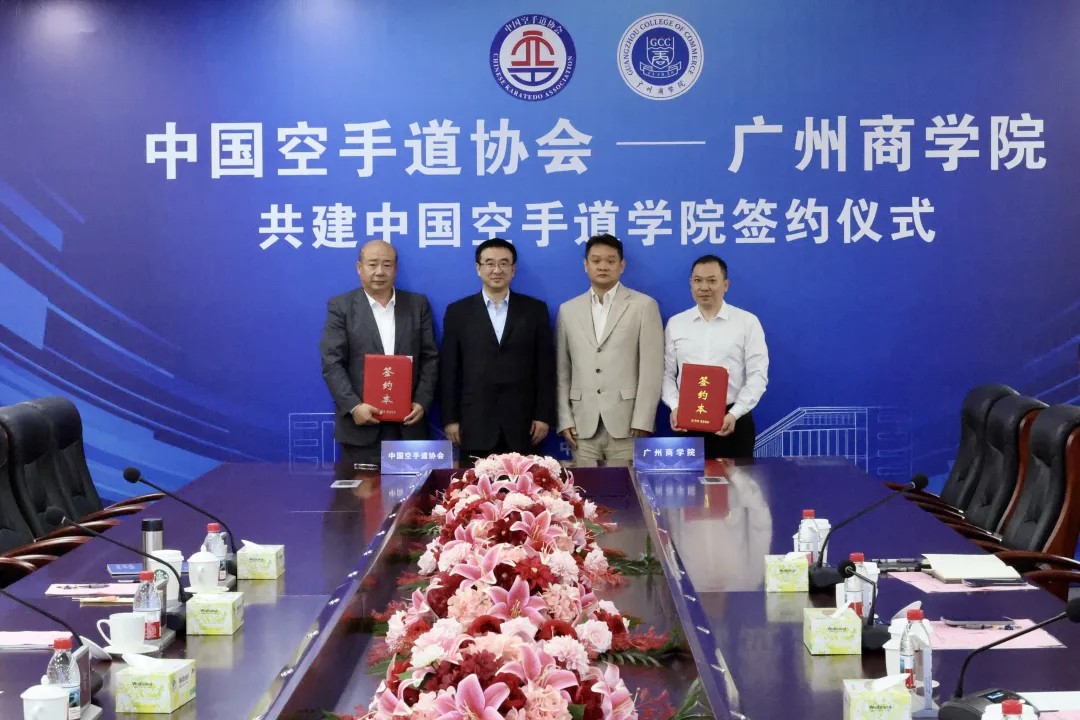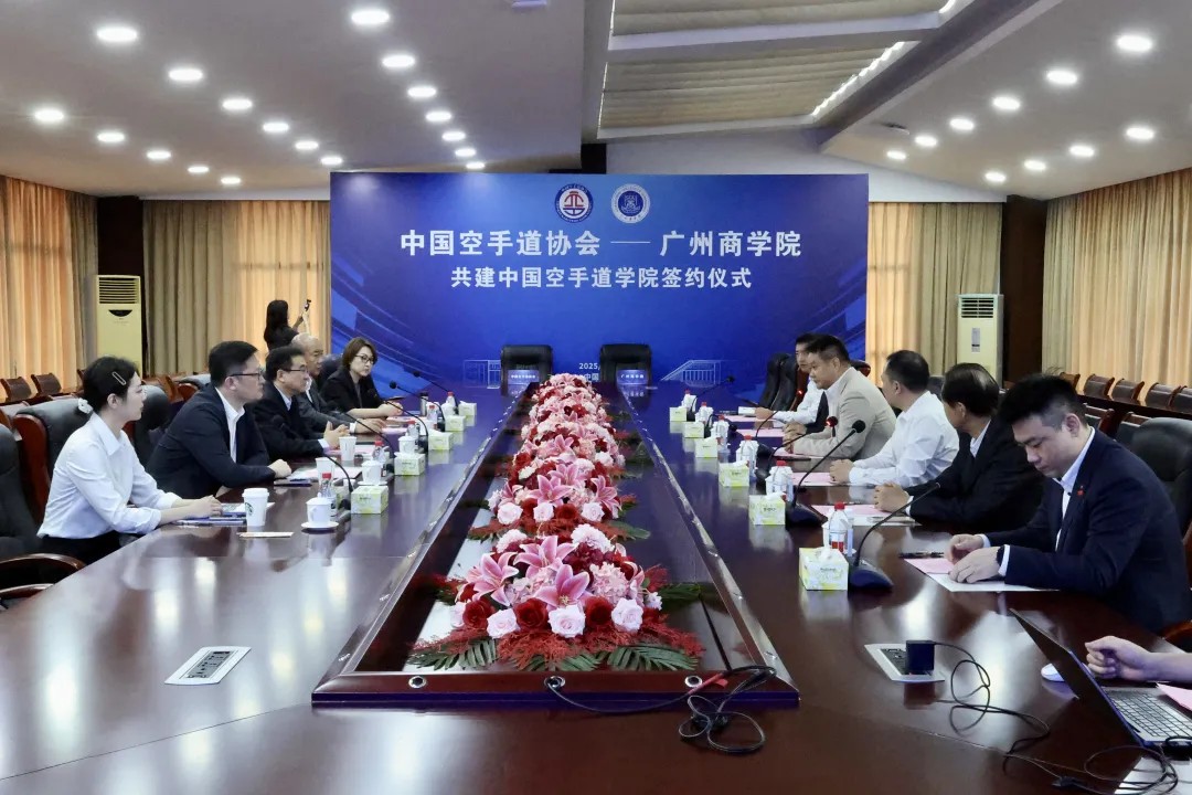 签约仪式上,郭小聪对各位领导嘉宾的到来表示欢迎,并详细介绍了学校体育工作成果。他表示,一直以来学校高度重视体育工作,董事会全力支持体育学院建设,并给予国家级运动员众多支持政策。学校沙滩排球队组建两年即培养出入选国家队的运动员,目前正代表中国参加德国世界大学生运动会;成立仅一年半的“虎鲨”篮球队在省级赛事中战胜多所传统强校,将于近期赴塞尔维亚集训;空手道更是学校的传统优势项目。郭小聪指出,本次双方共建中国空手道学院,不仅是学校办学工作的重要突破,也为学校继续融入区域经济发展提供了有力抓手。学校将一如既往、上下一心,以广商效率、广商态度扎实推进各项工作。