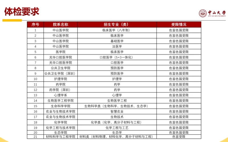 (3)我校不会将色盲色弱考生录取到受限专业。