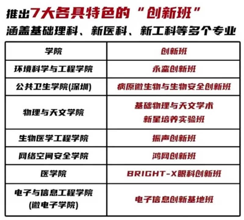 2025年中大推出7大各具特色的“创新班”,涵盖基础理科、新医科、新工科等多个专业,通过构建专属成长通道,将课程有机衔接、梯次推进、渗透融合,鼓励和支持学生学习深造。