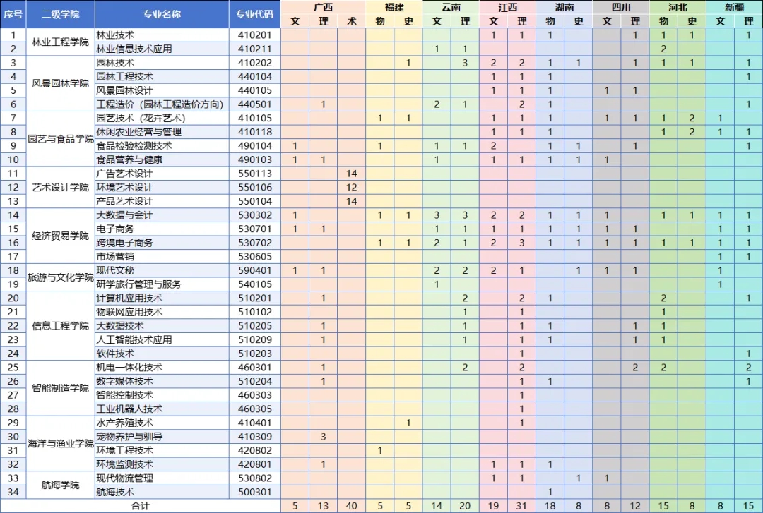 广东生态工程职业学院夏季高考招生计划总数2260人