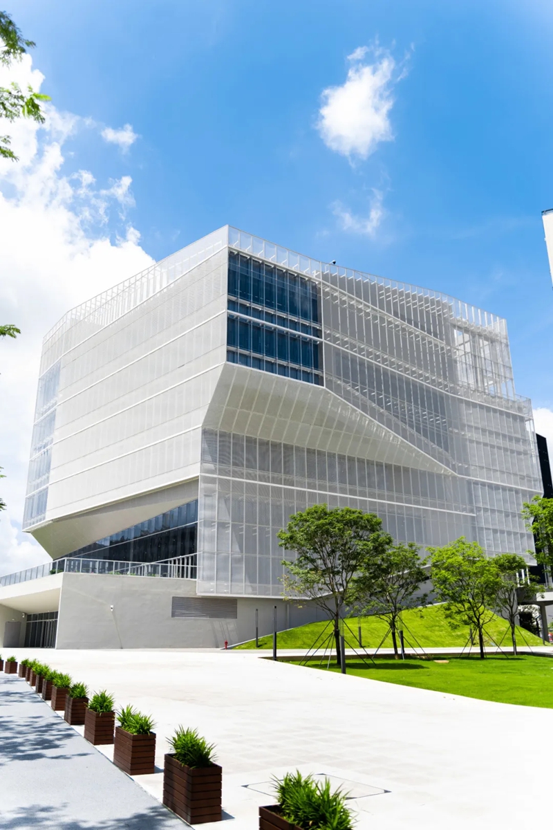 总的来说,学校建筑并不算多,整体设计充斥着简洁的科技感,以白、灰为主色调,点缀一点绿植花草等,和学校给人的气质十分契合,理性而不失活力。