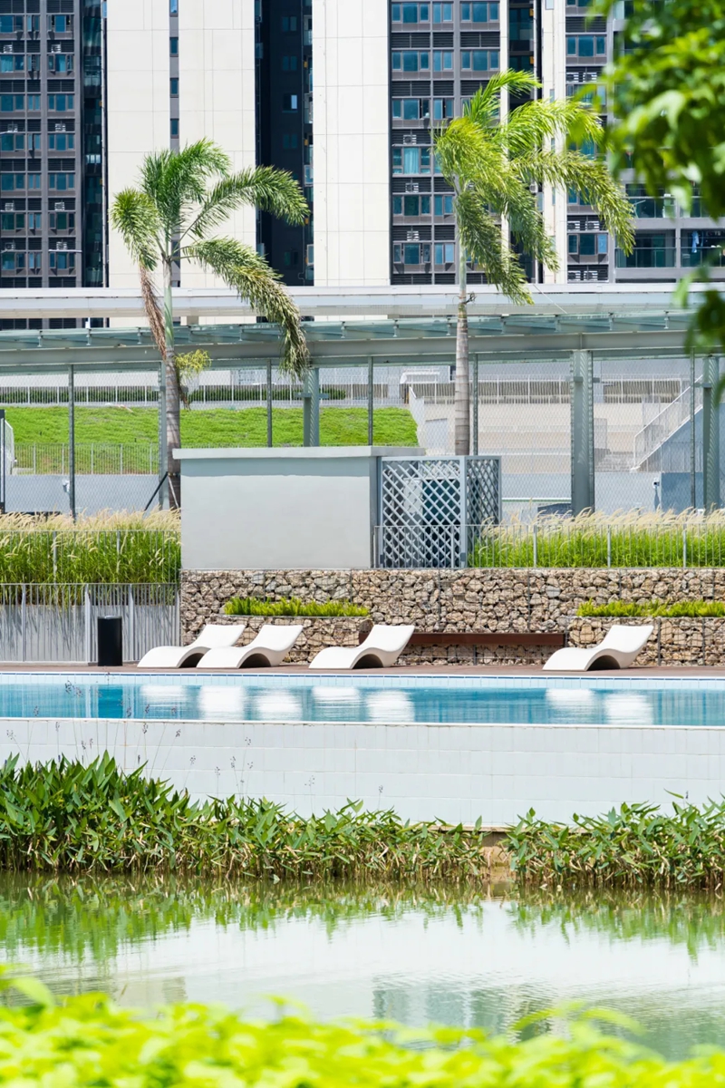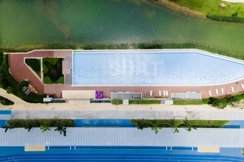 此外还有一个70米长的户外无边际“高颜值泳池”,水面波光粼粼,清透无比,海岛风情氛围直接拉满。
