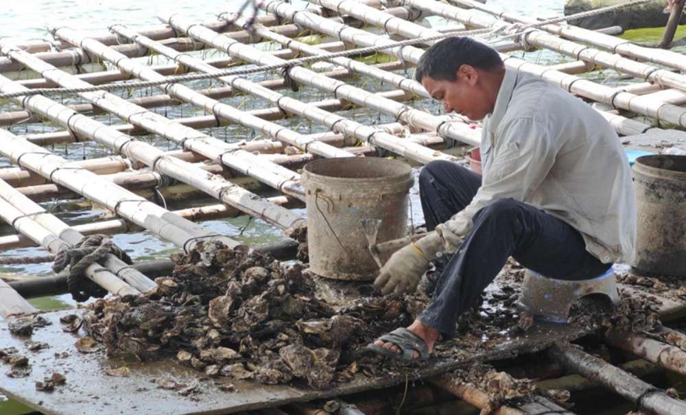 蚝农在处理生蚝 蔡锦儿 摄
