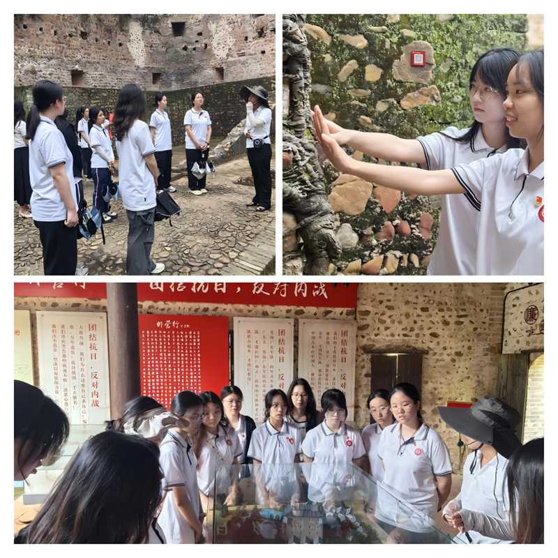 始兴红围的清代围楼里,墙面上37处弹痕成为最生动的教材。“外营保卫战中,村民用锄头、扁担与日军激战三天三夜,28位烈士长眠于此。”随着当地讲解员的讲解,学生们在烈士墓前默哀致敬。更令人动容的是,学生党员采集到89岁老人李伯强讲述的“古榕树消息树”故事:这棵百年古树曾在日军扫荡时作为预警信号,树身上至今留有弹痕。“这些带着乡音的记忆,让课本上的‘人民战争’变得可触可感。”2023级学生党员陈丽宜在采访笔记中写道。