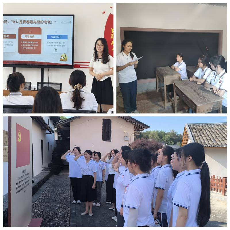 瑶坑村的老砖房里,时光仿佛定格在那个风雨如晦的年代。70多年前,中共广东省委机关在此以“日新小学”为掩护,创办刊物、组织宣传,以笔为枪唤醒民众,汇聚起抗日救亡的磅礴力量。马克思主义学院教师青明利结合现场实物,以“粤北烽火中的初心密码”为题,为学生们讲授沉浸式思政课。从白色恐怖中坚守阵地的智慧,到用群众语言传播真理的方法,从文化抗战的战略意义,到青年知识分子的使命担当,一个个发生在老屋里的故事,让理论变得可感可知。“武器是战争的重要因素,但不是决定因素,决定因素是人不是物......”学生党员刘莹儿站在当年编辑们工作过的油灯旁,深情朗诵《论持久战》经典片段。清脆而坚定的声音在古村梁间回荡,宛如穿越时空的信仰对话,与当年在此奋斗的先贤们精神相通。随后,全体学生党员在瑶坑村党员宣誓台前整齐列队,面向党旗重温入党誓词。铿锵誓言与古村风声交织,既是对革命先辈的庄严告慰,更是青年一代接续奋斗的郑重承诺。