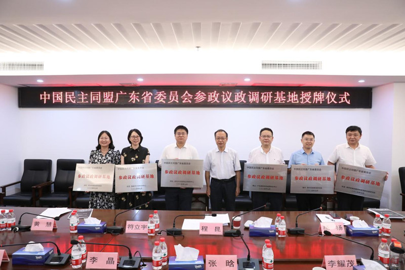 会议首先举行了授牌仪式,民盟省委会为六家单位进行授牌,标志着广东民盟参政议政工作平台建设迈出坚实一步。由民盟惠州市委会与惠州学院粤港澳大湾区教育高质量发展研究中心合作共建的惠州民盟教育研究院荣获“民盟广东省委会参政议政调研基地”。