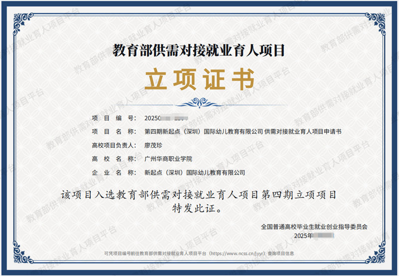教育部供需对接就业育人项目自2021 年启动,旨在推动高校人才培养与产业需求紧密衔接,实现就业与培养的有机联动。第四期项目聚焦重点领域人才供需,涵盖就业实习基地、定向培养等多种类型。广州华商职业学院教育学院此次脱颖而出,正是其在学前教育、艺术教育领域专业实力的有力证明,也是学院“教、学、做一体化”教学模式创新成果的集中体现。
