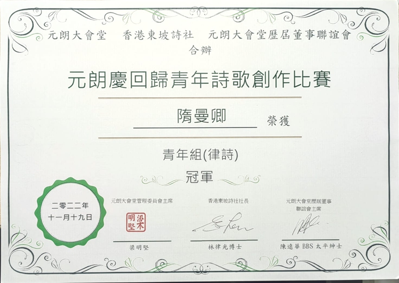 (「中国文学(荣誉)文学士」课程学生在全国诗词创作比赛中获奖)