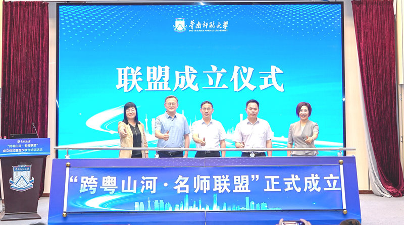 7月7日,由华南师范大学牵头,广东、山东、河南等省联合发起的“跨粤山河·名师联盟”成立仪式在广州举行。来自教育部“双名计划”、山东省齐鲁教育名家、河南省中原名师、广东省名师工作室、广东省“百千万人才培养工程”等项目的130余位全国名师代表齐聚华南师范大学,共同见证省域教师发展共同体的诞生。