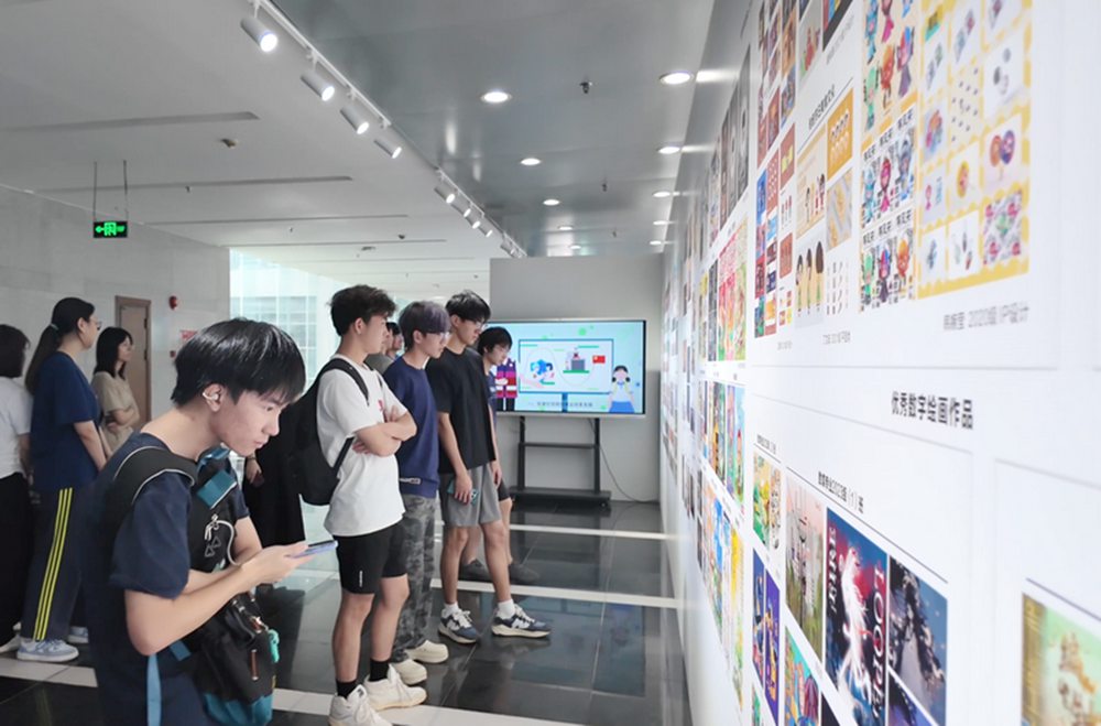 本次作品展以“数启新章,创翼逐光”为主题,将数字技术、艺术创意与社会洞察融为一体,构建了一个跨越虚实边界的沉浸式剧场,展出当天便吸引了众多师生前来参观交流。