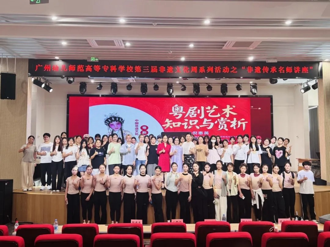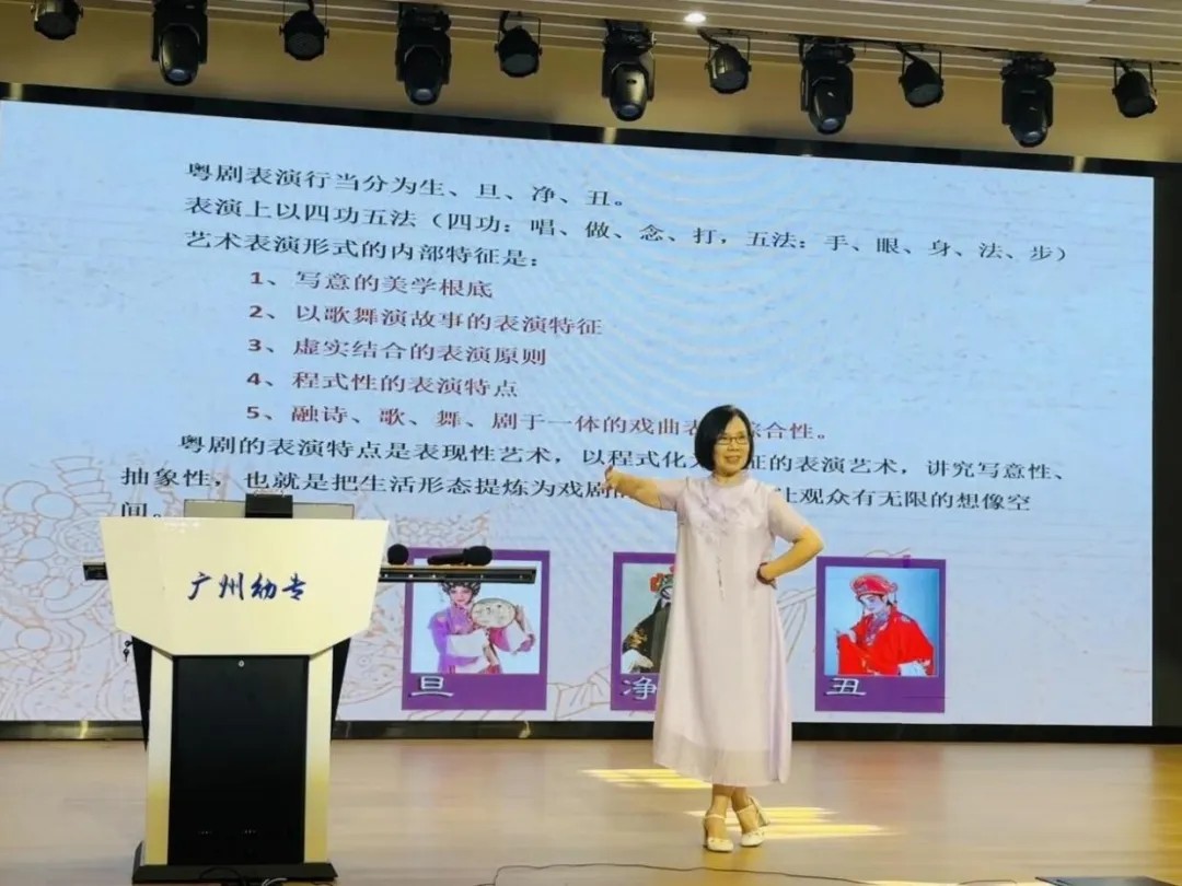 2025年6月,广州幼儿师范高等专科学校第三届非遗文化周的首场“非遗传承名师讲坛” 邀请了广东省戏剧家协会主席、著名粤剧艺术家倪惠英女士莅临我校开展讲座,对传统粤剧的标准与在实际演出中的技巧特点进行了分享与教学。讲座开始前,学校党委书记、行政负责人丘毅清为倪惠英颁发广州幼儿师范高等专科学校客座教授聘书,这标志着我校进一步推进了在非遗与美育教育的教学力量。