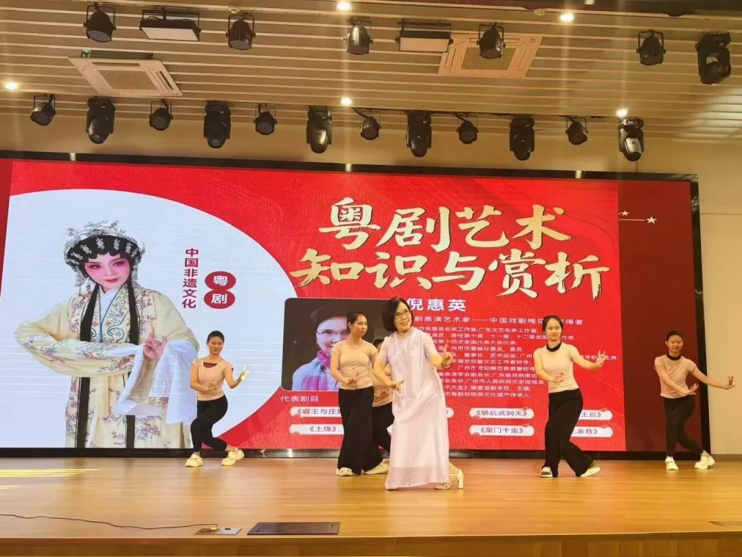 讲座以《粤剧知识与审美普及教育》为主题作为开篇,倪惠英教授从粤剧的历史渊源、艺术特点、表演行当、唱腔体系等方面进行了讲解,同时结合传统与现代的教学思路,将传统粤剧的表演技巧与鉴赏标准进行了全面地梳理。