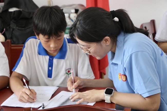 辅导过程中,志愿者们采用讲解、提问、练习相结合的方式,帮助孩子们查漏补缺,针对孩子们在学习中遇到的疑问,逐一耐心解答,并适时给予鼓励,增强孩子们的学习信心,现场学习氛围浓厚且温馨,孩子们逐步攻克学习难点,为即将到来的期末考试做好更充分的准备。