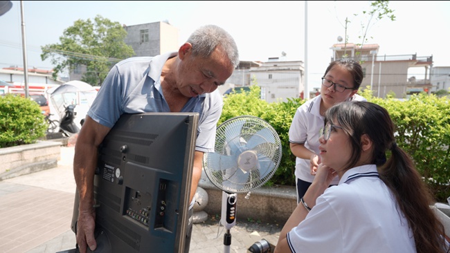 “这台电风扇转起来嗡嗡响,你帮我看看?”智能工程学院电子协会的大学生志愿者们在教师党员的带领下化身“家电医生”,在九联村委广场搭建起“义务维修”便民服务台。拆卸螺丝、清理零件、检查电路、检测电机、更换故障部件、通电检测……村民们送来的电磁炉、电风扇、台灯、电吹风、烧水壶等故障小家电在志愿者们手中重获新生。“年轻人真厉害!”精湛的技术与热情的服务赢得了村民们的赞扬。