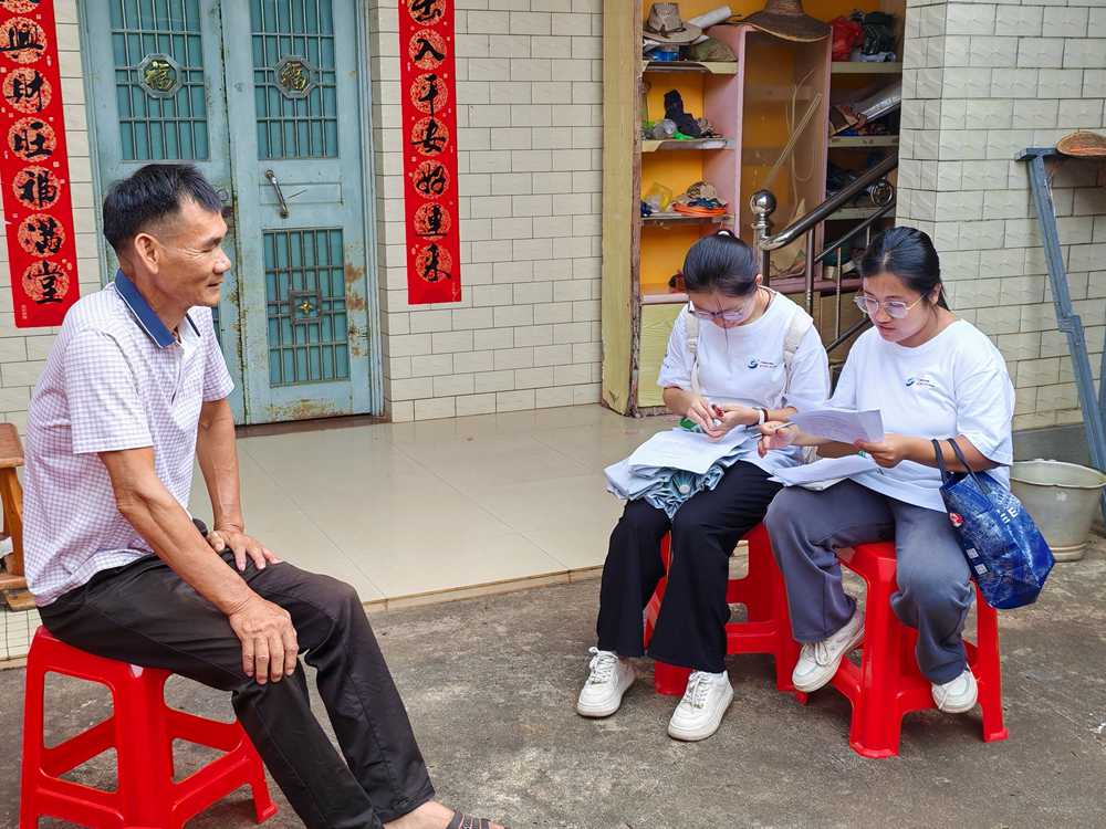 实践队对退休村书记进行专访 蔡锦儿 摄