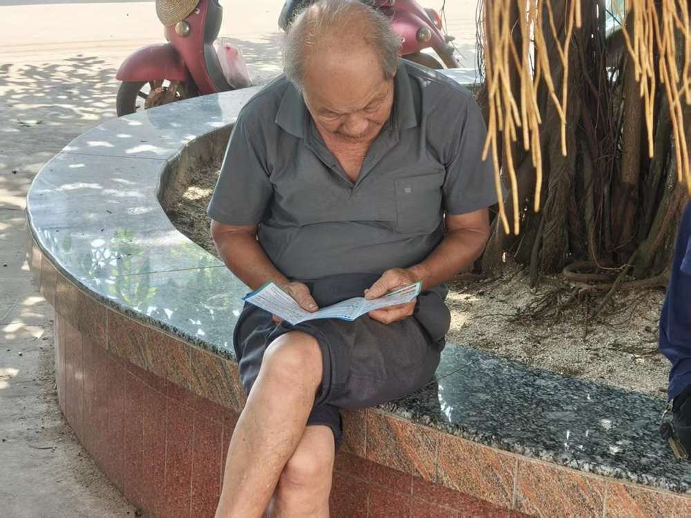 体村村民正在认真浏览宣传手册 牟艳旭 摄