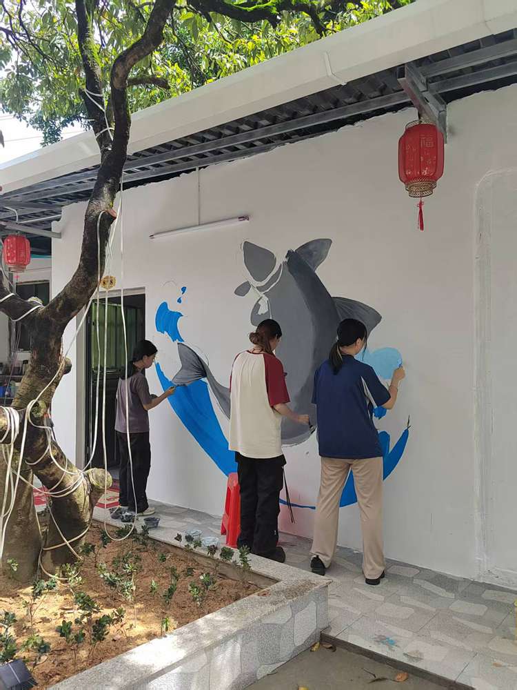此次行动是广州航海学院数字媒体与交互设计学院 “设计服务社会” 理念的实践。离开时,夕阳为墙绘镀上金边,这场艺术之旅不仅留下绚丽画作,更播下文化共鸣的种子,以青春之力助乡村振兴。