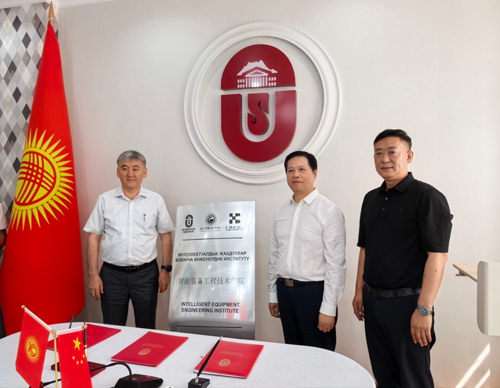 在吉尔吉斯斯坦奥什国立大学,学校与江苏汇博机器人技术有限公司一起签署了三方战略合作协议,为三方共建的“智能装备工程技术学院”挂牌。该学院由广东工贸职业技术学院、奥什国立大学和江苏汇博机器人技术有限公司三方联合成立,致力于培养智能制造领域的高技能人才,打造成为产教融合的“中亚样板”工程。此外,与奥什国立大学孔子学院就服务“一带一路”中文+技能培训等领域开展合作的前景进行了深入的探讨。