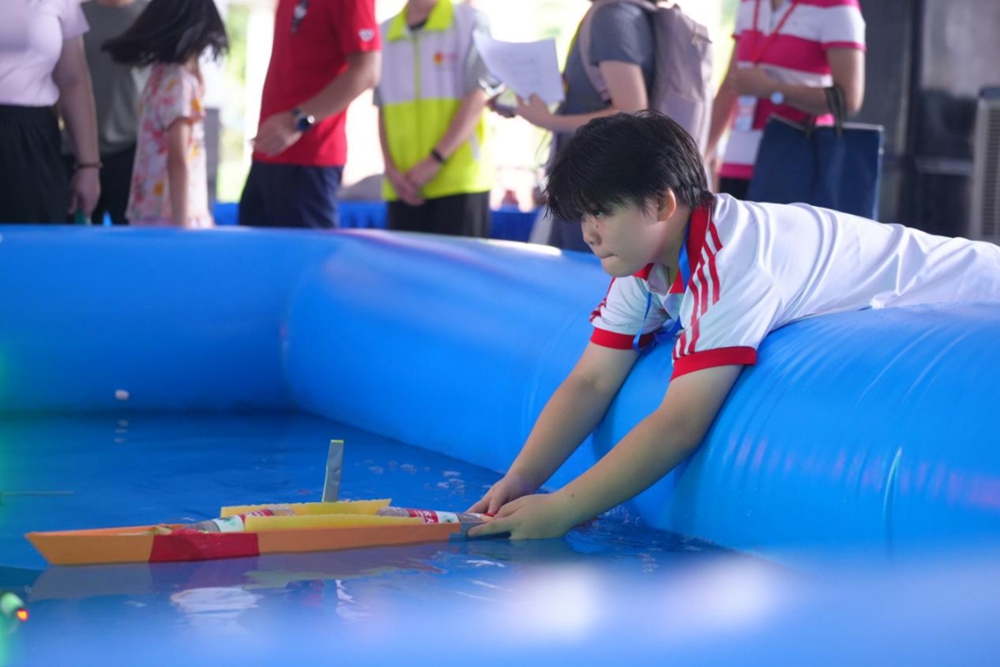 比赛现场,选手们通过答辩、实物展示等方式展现研究成果,专家评委则从创新性、可行性与发展前景等角度提出建议。现场气氛热烈,船模竞速环节更将赛事氛围推向了高潮。