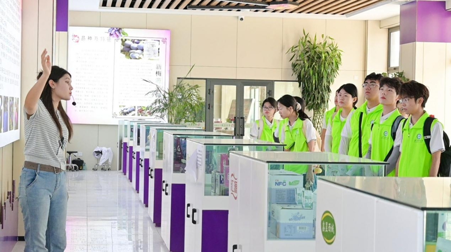 图为大学生志愿者参观西梅园(郭炜琪 摄)