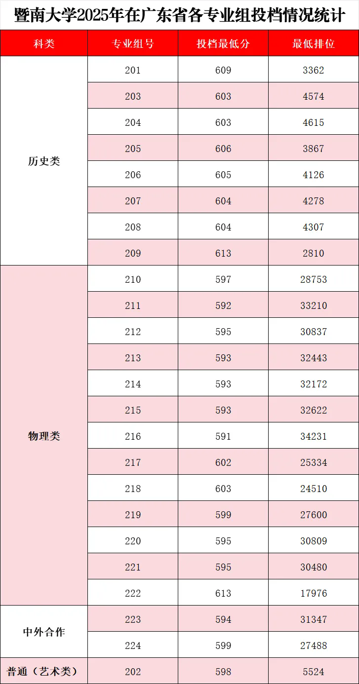 暨南大学2025年在广东省普通高考各专业组投档情况发布