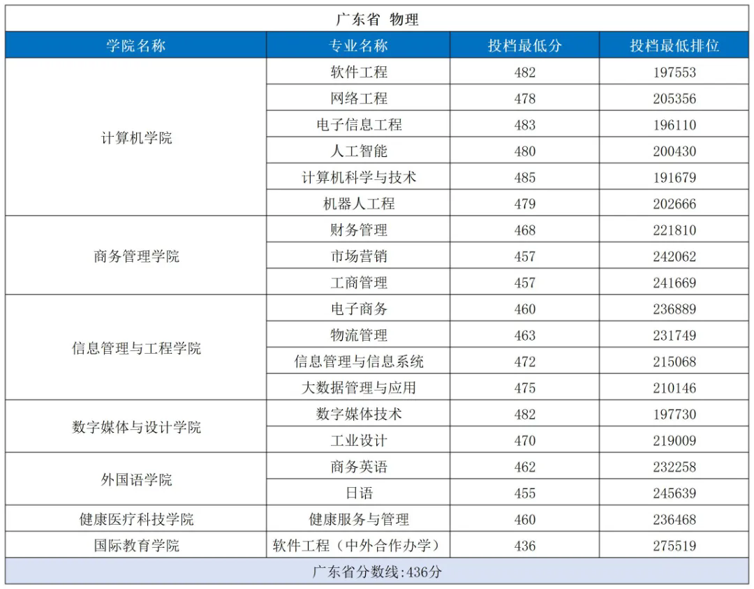 广东东软学院丨2025年物理、历史类投档结果公布