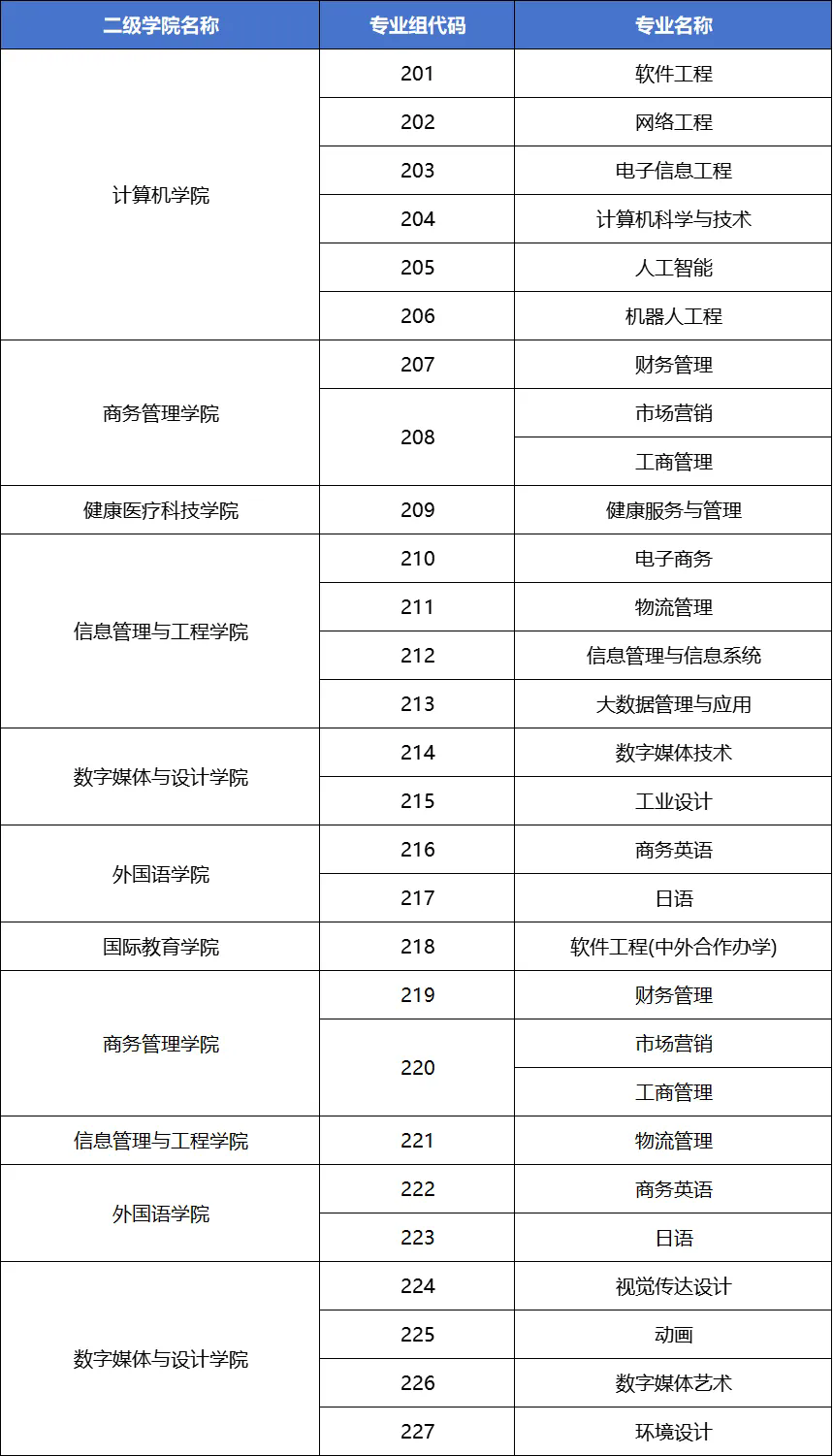 广东省院校专业组代码与专业名称对照表