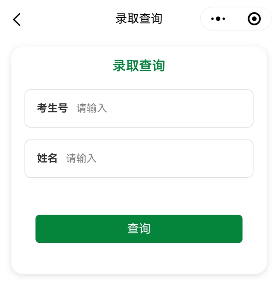 第二步:输入自己的“考生号、姓名”即可查询录取结果。