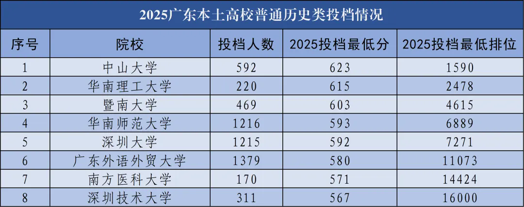 该校2025年物理类投档线及排位大幅上涨,在广东省本土规模以上招生高校中,排名继续向前迈进,历史类亦稳步提升。