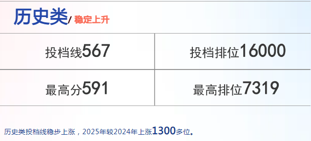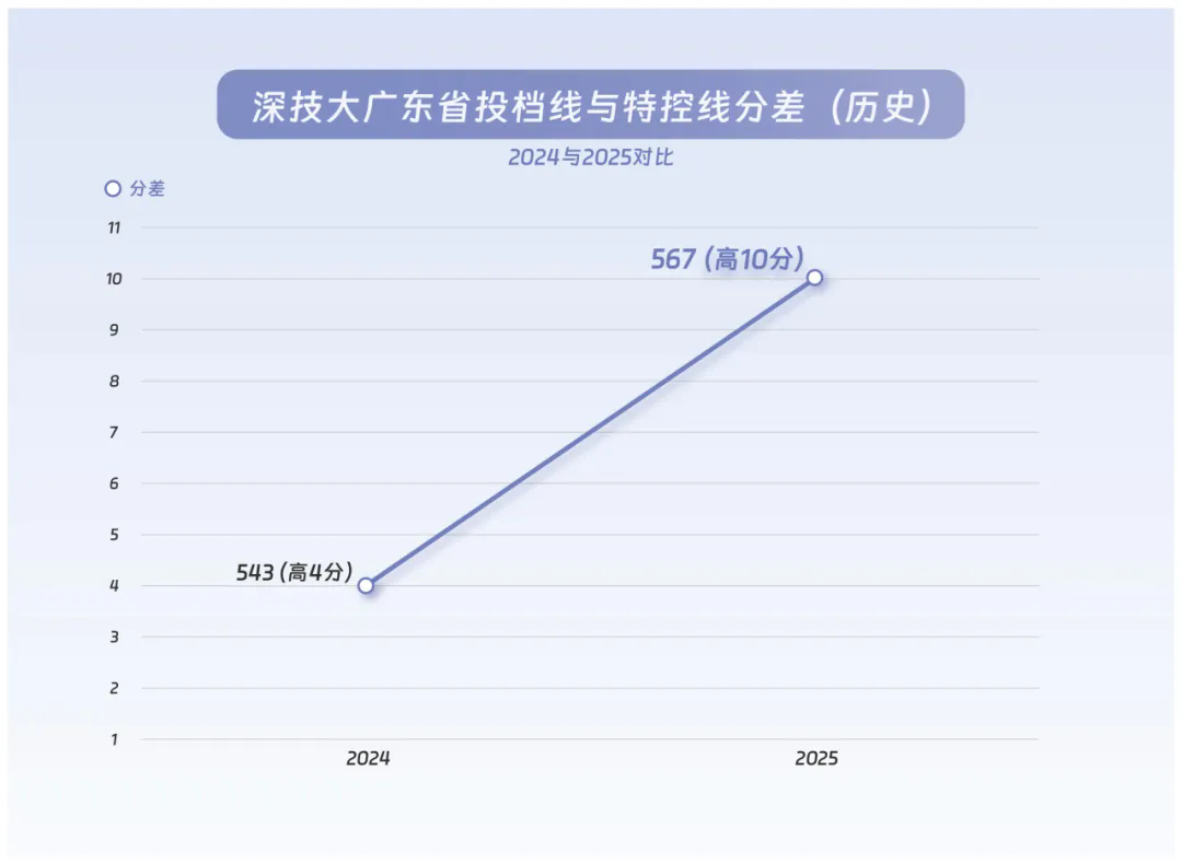 2025年历史投档线高出特控线10分,较2024年高出特控线4分有提升。