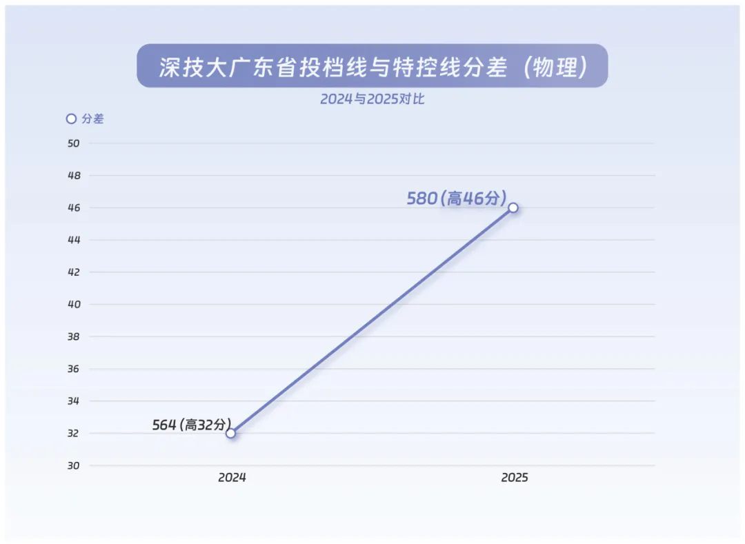 2025年物理类投档线高出特控线46分,2024年高出特控线32分,有较大幅度提升。