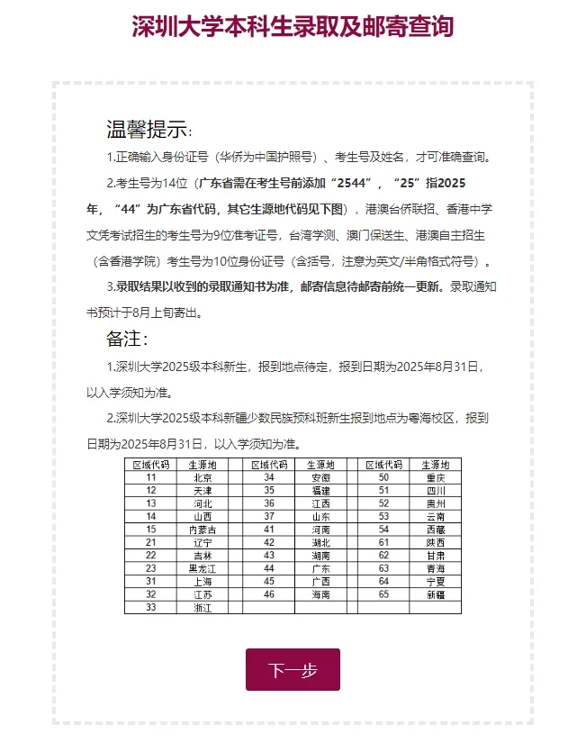 各省市录取工作正在分批进行中,相应批次录取工作完成后,我们会第一时间录入录取结果,方便考生及家长查询,录取通知书预计8月上旬前寄出,欢迎持续关注“深圳大学本科招生网”及“深圳大学本科招生”公众号信息发布。