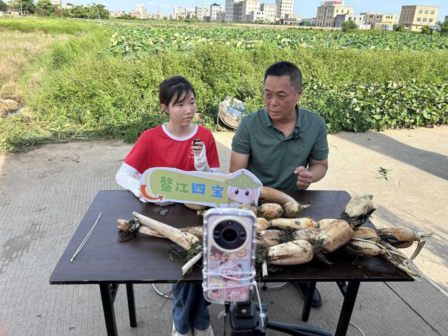 为提升“鳌江四宝”的知名度和文化内涵,突击队精心策划并成功开展了“‘鳌’游云端·村书记带你探‘四宝’”主题直播活动。队员们化身文化推介官,特别邀请龙舟村党总支书记周小川一同走进镜头,带领广大网友沉浸式“云游”鳌江。在村书记的生动讲述下,不仅直观展示了特色农产品的优质生长环境,更鲜活地挖掘出“四宝”背后蕴含的乡土故事、农耕智慧和潮汕风情。直播吸引了数千人次观看,有效传播了鳌江特色农产品的优质形象和深厚的潮汕地域文化底蕴。