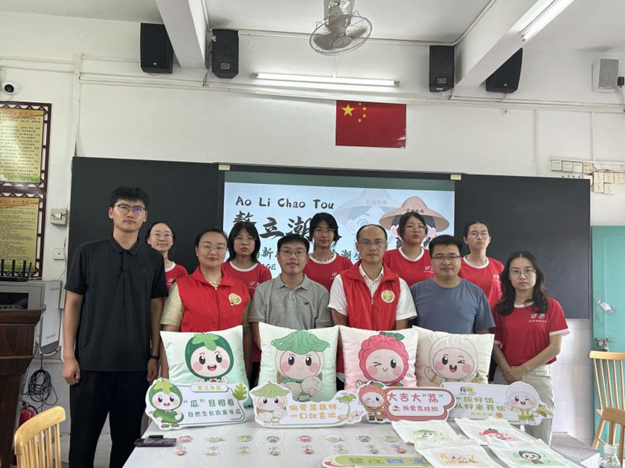 2025年7月,东莞职业技术学院“鳌立潮头”兴农突击队深入广东省惠来县鳌江镇,开展以“文化赋能产业,青春助力振兴”为主题的暑期“三下乡”社会实践活动。团队紧密对接鳌江镇发展需求,在东莞石碣镇、东职院组团驻镇帮镇扶村工作队(以下简称:帮扶工作队)指导下,聚焦当地农文旅融合发展的紧迫任务。立足当地特色农业资源,通过IP打造、文创开发、电商直播、艺术墙绘等创新实践,为鳌江镇农文旅融合发展注入青春动能,贡献了“百千万工程”引领下乡村振兴的生动实践。