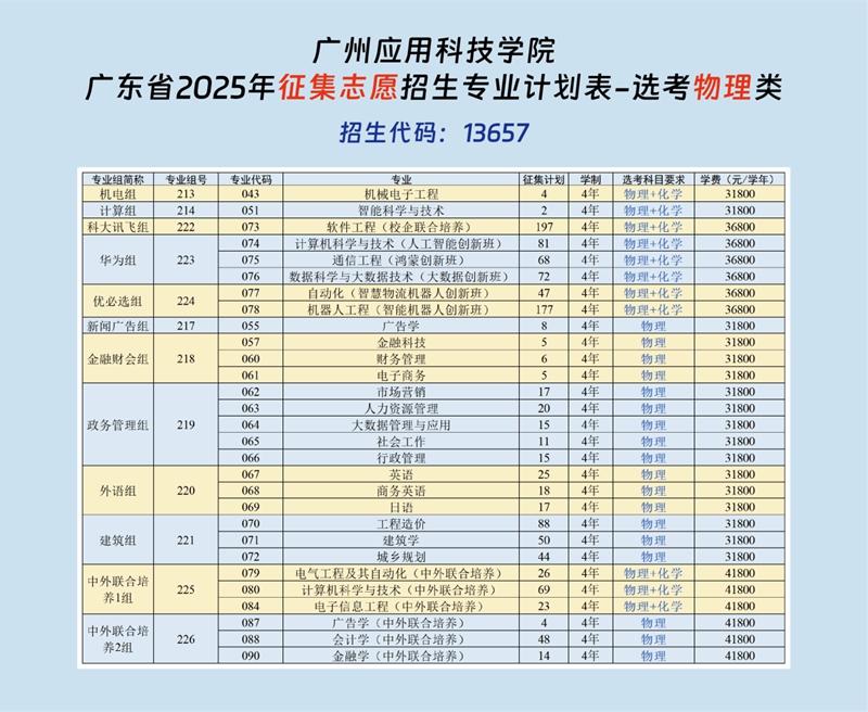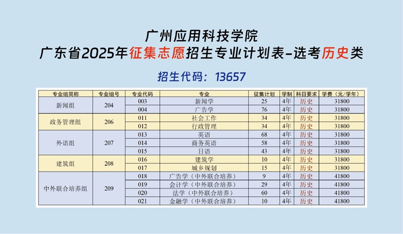 为优化专业布局并增加考生本科录取机会,广州应用科技学院2025年本科招生计划较去年有所增加。目前,在完成本科批次第一次投档后,广应科尚有部分专业和招生计划进入征集志愿阶段,欢迎广大考生积极报考。