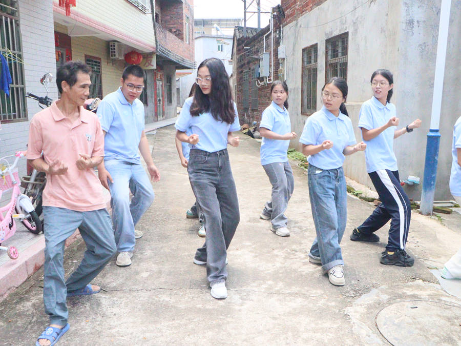 为保护这一非遗瑰宝,村里采取编撰教材、进校园授课、文化节展演等多种方式。“育见知行”的队员们在蓝师傅指导下体验基础招式,并发挥新媒体传播特长,拍摄制作蓝家拳教学短视频,计划在社交媒体平台推广。