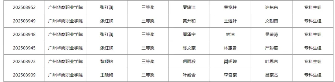 广州华商职业学院学子首次参赛即表现出色,共荣获10项大奖,包括一等奖2项、二等奖2项、三等奖6项。许晶、王晓梅、张红润、黎顺钻四位老师获得优秀指导老师称号。广州华商职业学院荣获优秀组织奖。