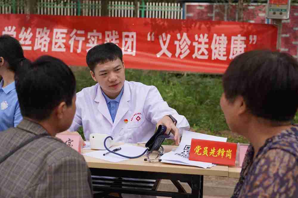 7月11-20日,南疆骄阳似火,广东医科大学丝路医行实践团的师生带着听诊器和血压计,穿梭在第三师图木舒克市的社区小巷中。该实践团主要由广东医科大学第一临床医学院的本科生及研究生组成,在广东援建、校地共建的第三师图木舒克市总医院指导下,深入社区开展入户义诊、健康宣教和基层医疗调研,用专业所长为边疆群众送去健康关怀,在行走中感悟兵团精神。