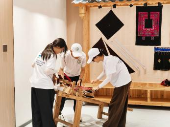 在黄洛瑶寨的长发长廊,实践团成员跟着瑶族阿妈了解民风民俗;在白石村的侗族鼓楼,与村民们共绘“民族团结同心圆”画。在石甲村、黄洛瑶寨等民族村寨的走访中,团队通过问卷调查、座谈访谈等方式,开展社情民情考察、民族团结故事收集、非遗活动体验。民族村寨里留下的青春足迹,让大家深刻理解“各民族像石榴籽一样紧紧抱在一起”的深意。结合这些故事开展的“两弹一星”精神宣讲活动,更让家国情怀在互动中升温。