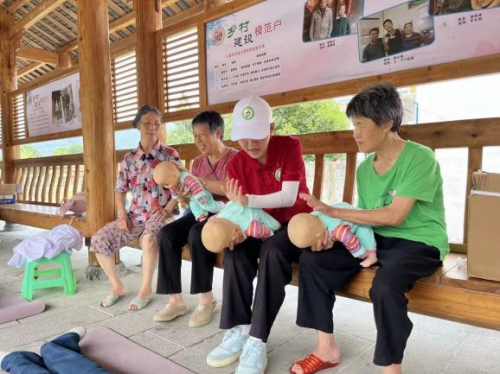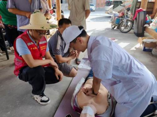 “奶奶,您的血压有点高,降压药要按时吃。”在石甲村的义诊点,实践团成员用刚学会的桂柳话叮嘱老人。他们在7个村寨开展爱心诊疗、急救科普、用药指导、心理辅导等,为800余名村民测血压、做健康评估、发放用药指导手册。针对山区常见的意外急救需求,团队现场演示心肺复苏和海姆立克急救法,手把手教村民操作,村民们跟着口令练习按压节奏,“学会了能救家里人”的朴素想法,让健康科普有了最实在的意义。