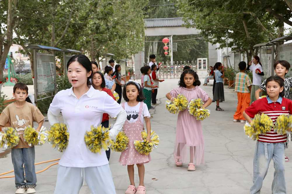 “穗疏同心”实践团带领塔什米里克乡青少年学习健美操